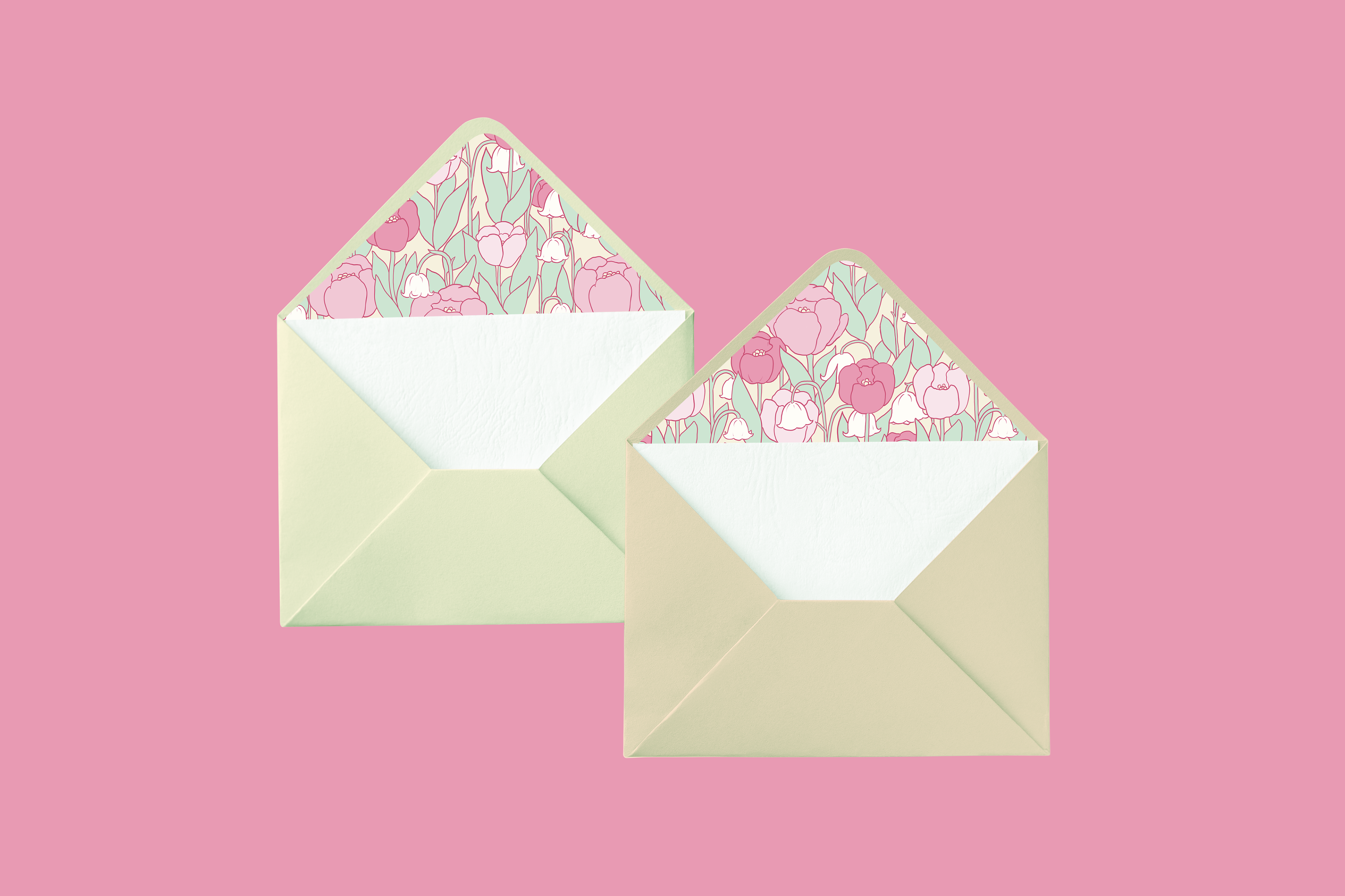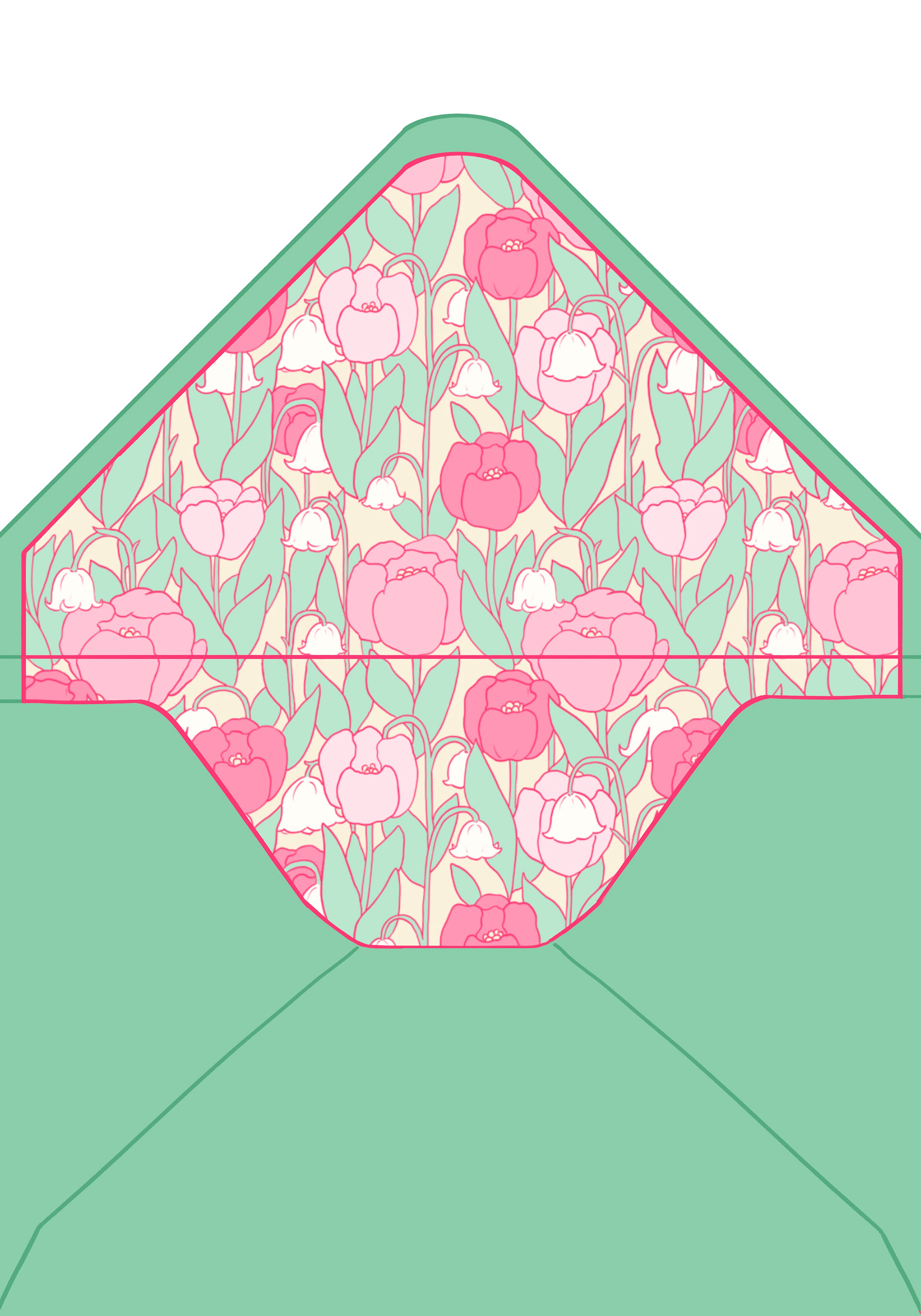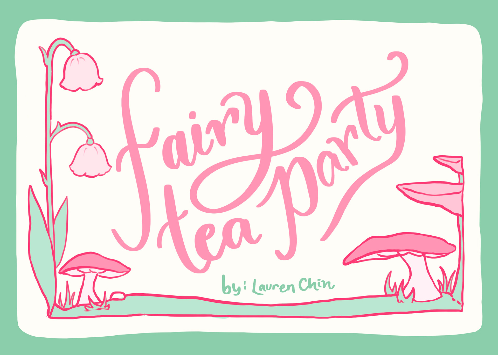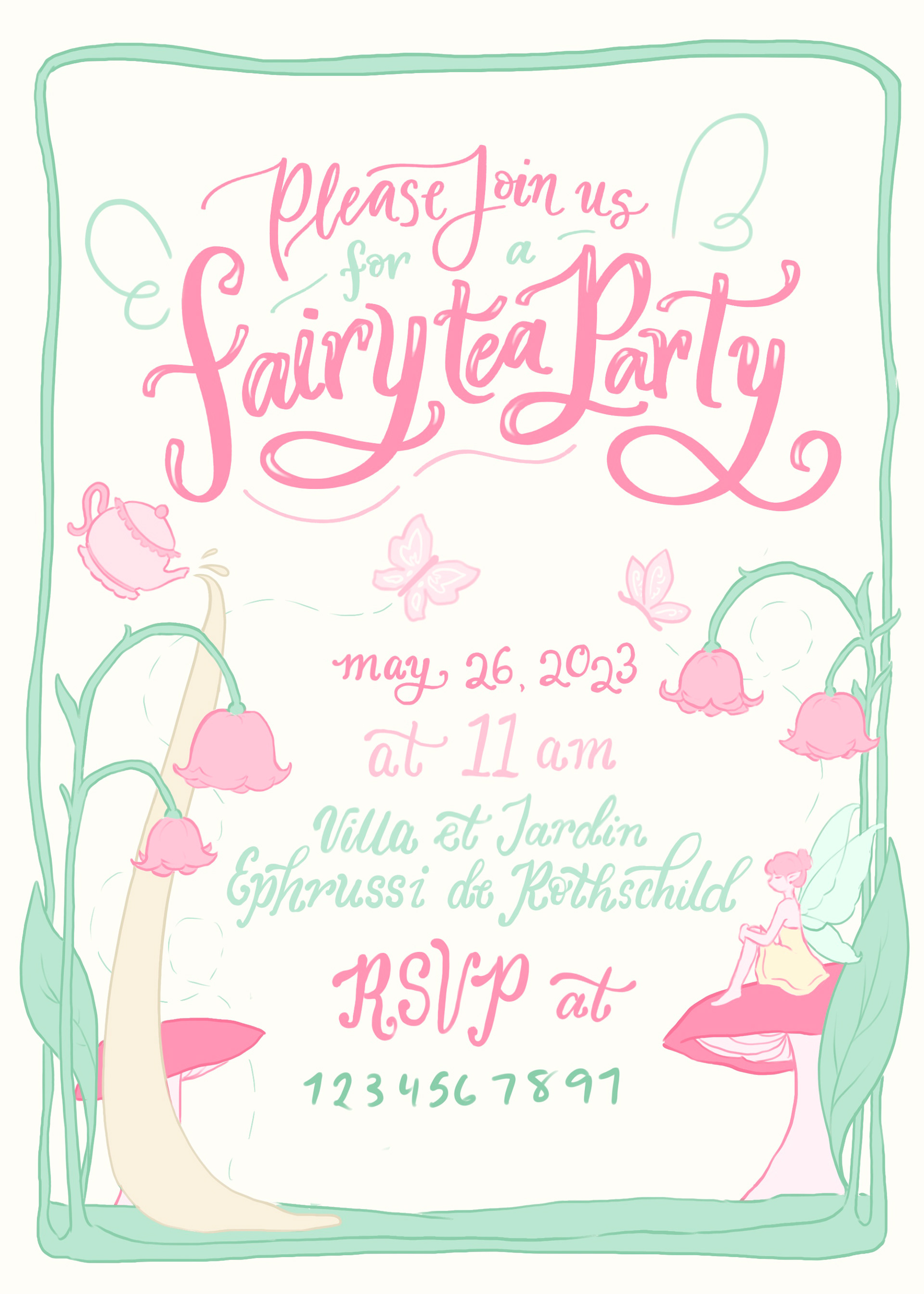 Fairy Tea Party: A stationary collection for a fairy themed tea party. The stationary set includes a tri-fold invitation, a name card, an envelope, a patterned envelope liner, and four fairy garden themed stamps.